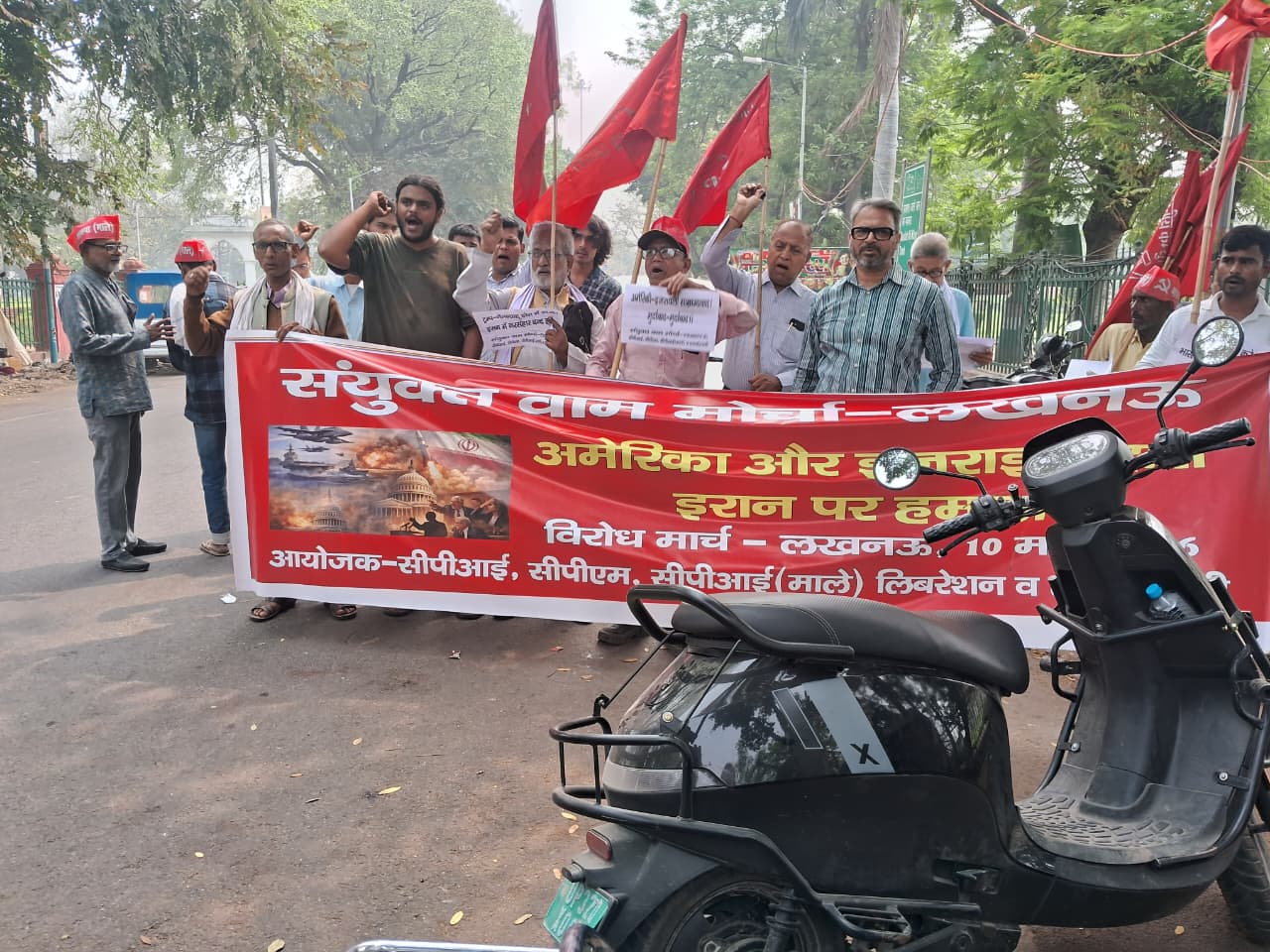 लखनऊ | ईरान के खिलाफ अमेरिका और इज़राइल द्वारा चलाए जा रहे आक्रामक और अवैध युद्ध के विरोध में 10 मार्च को लखनऊ में वामपंथी दलों – भारत की कम्युनिस्ट पार्टी (मार्क्सवादी–लेनिनवादी) लिबरेशन, भारतीय कम्युनिस्ट पार्टी, भारत की कम्युनिस्ट पार्टी (मार्क्सवादी) और ऑल इंडिया फॉरवर्ड ब्लॉक – ने संयुक्त रूप से विरोध मार्च आयोजित किया। यह मार्च परिवर्तन चौक से शुरू होकर जिलाधिकारी कार्यालय तक गया, जहां राष्ट्रपति के नाम एक ज्ञापन जिलाधिकारी के माध्यम से भेजा गया।